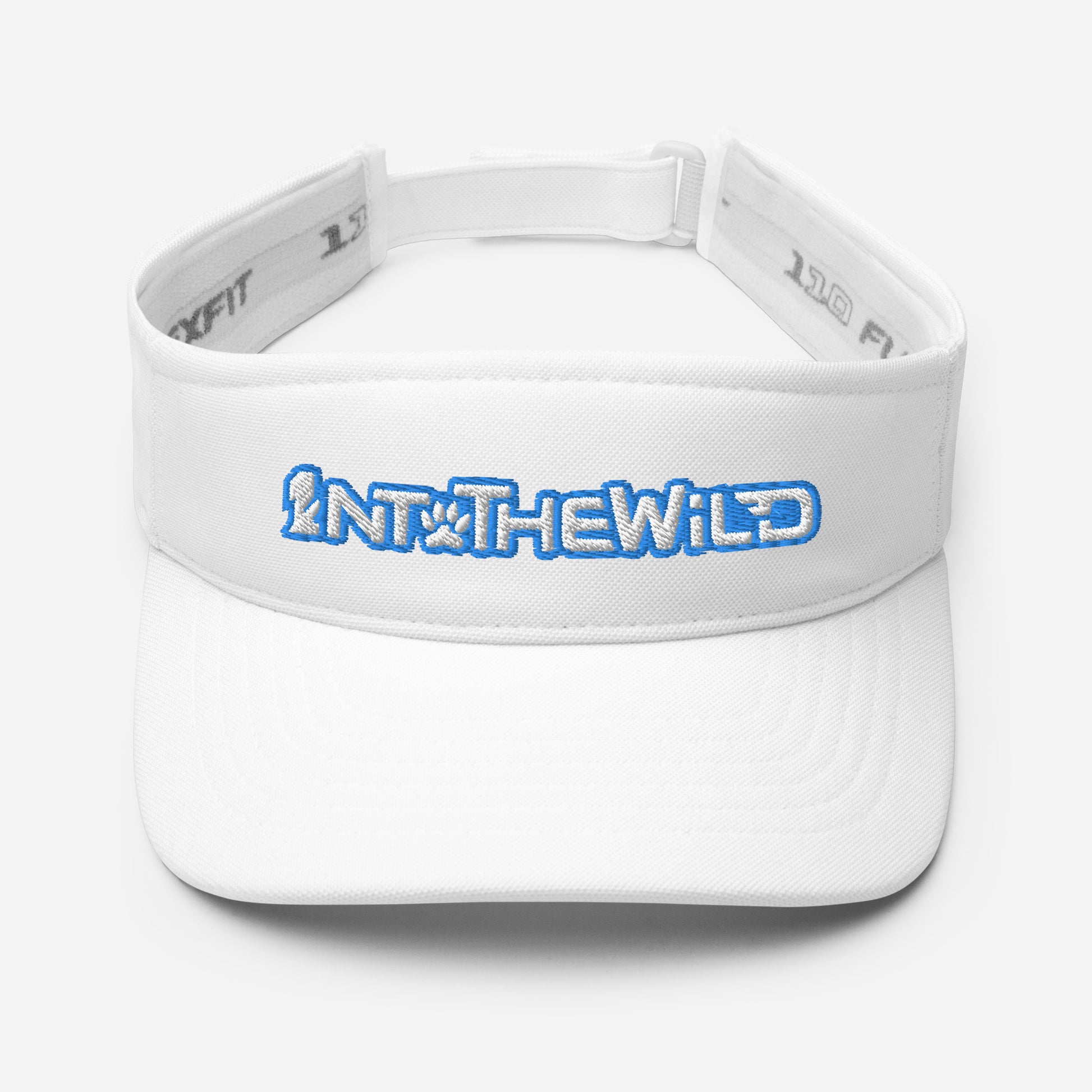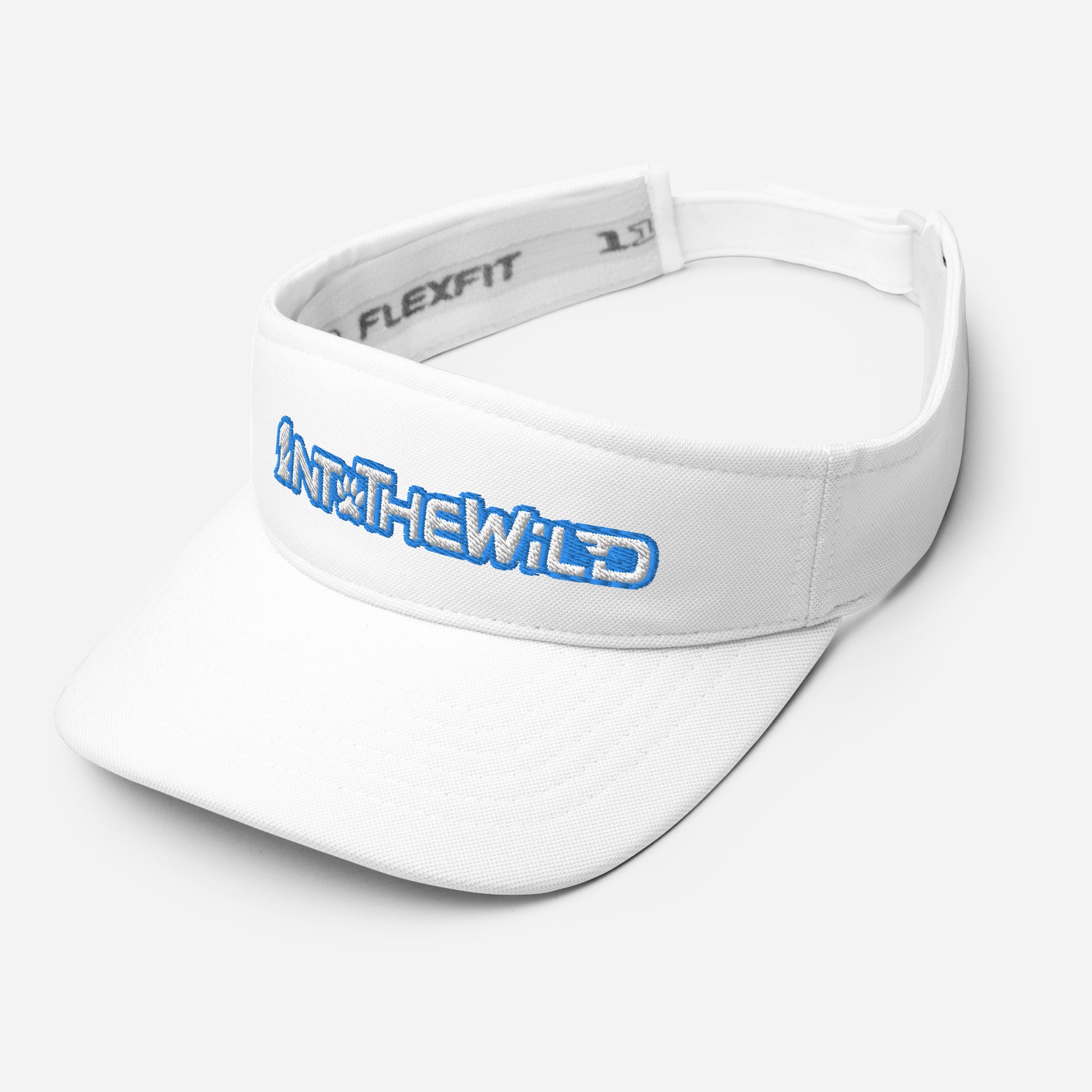 1ntothewild visor with blue and white embroidery.