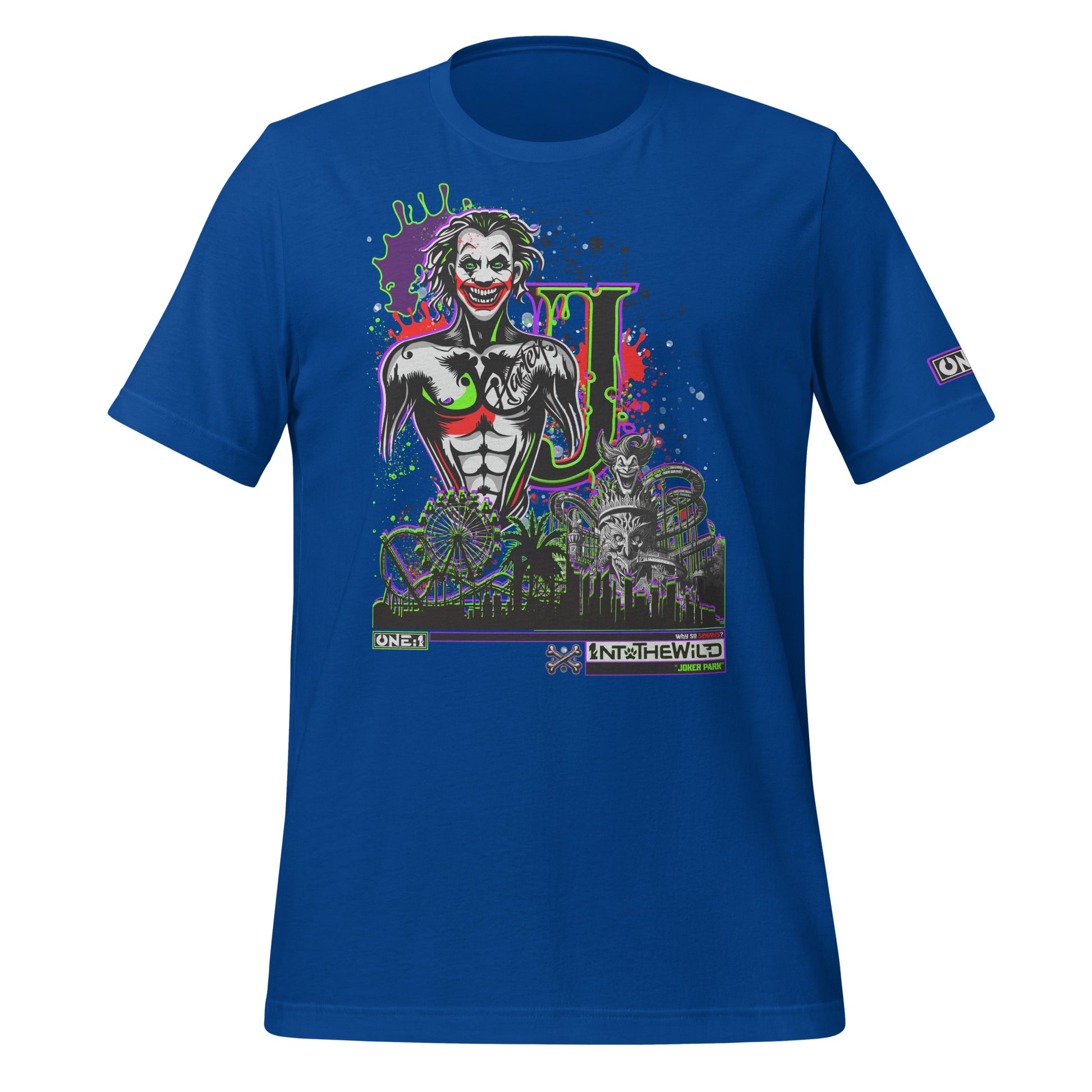 If you are a fan of the Joker , you can't miss the "Joker Park" t-shirt, with a spectacular design, mixing greens, purples and reds.
