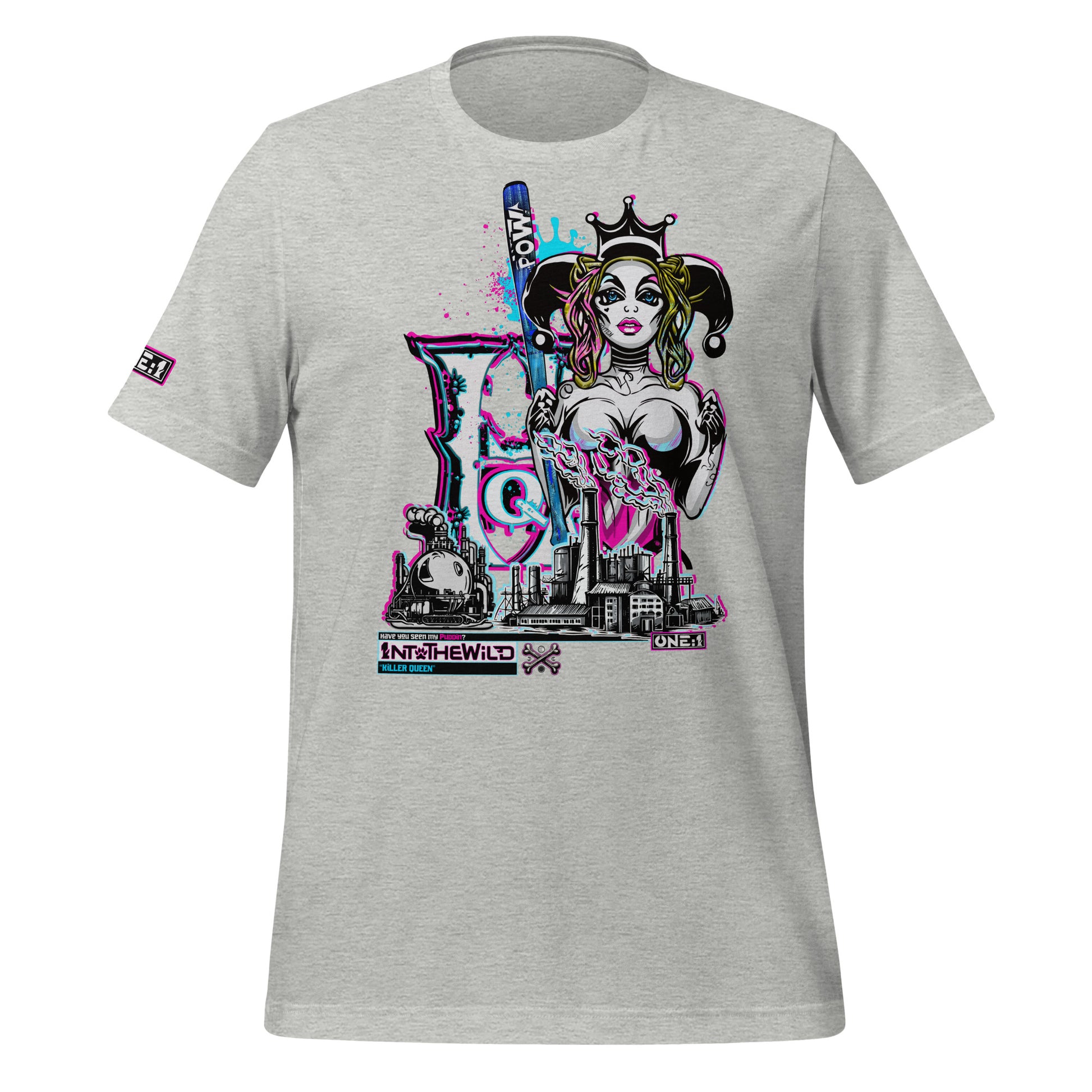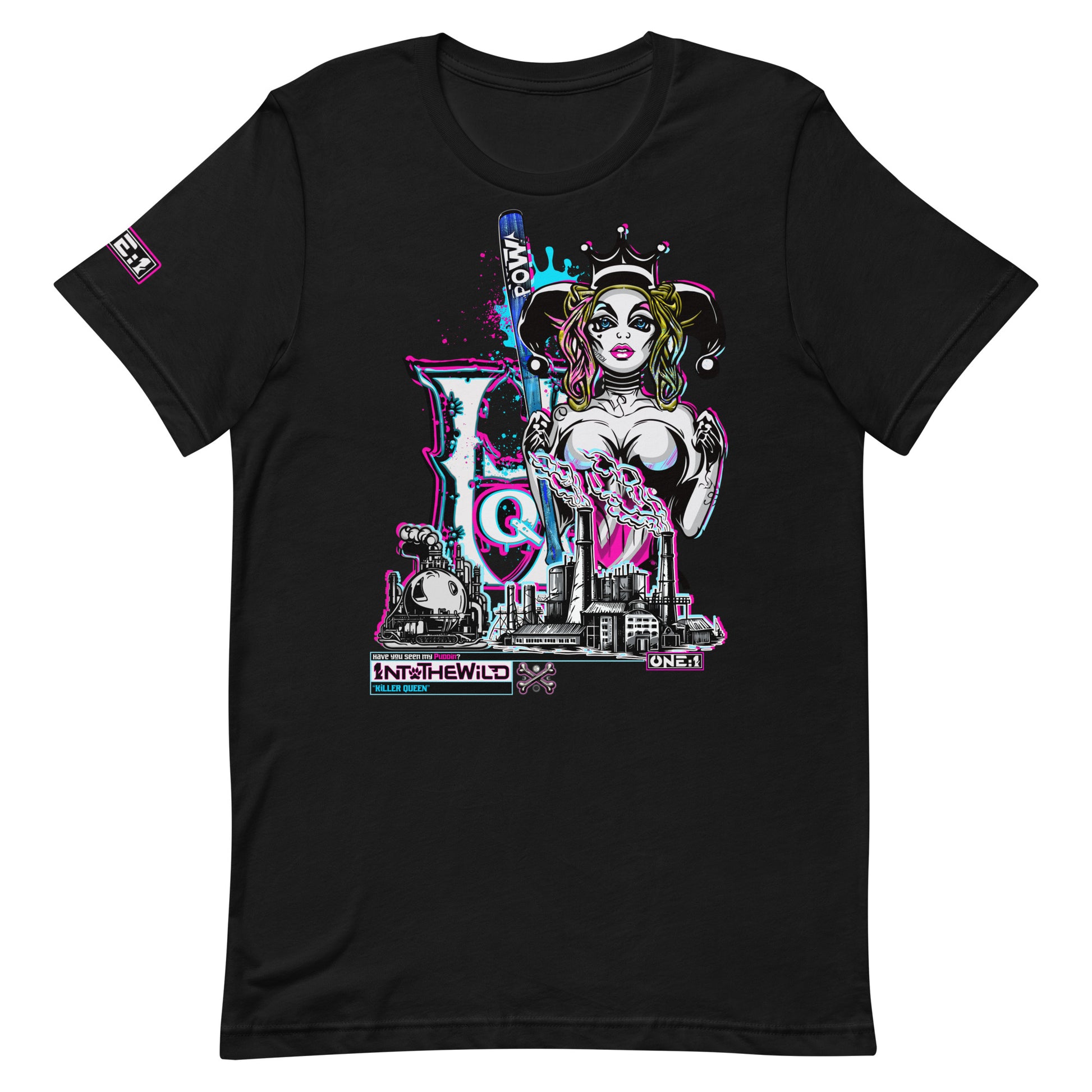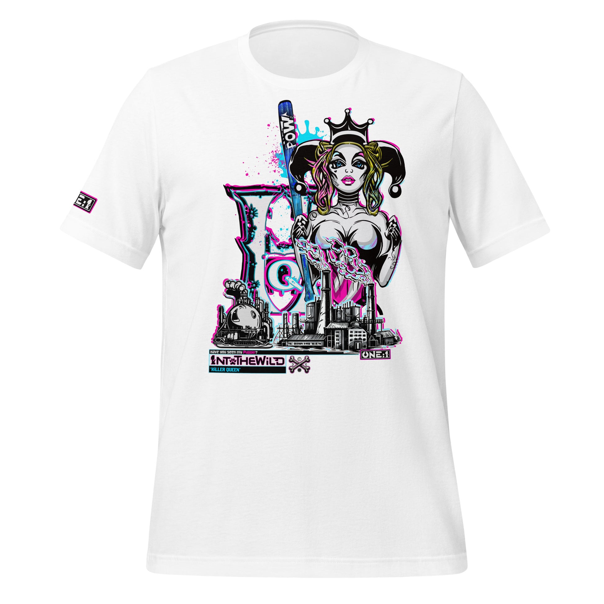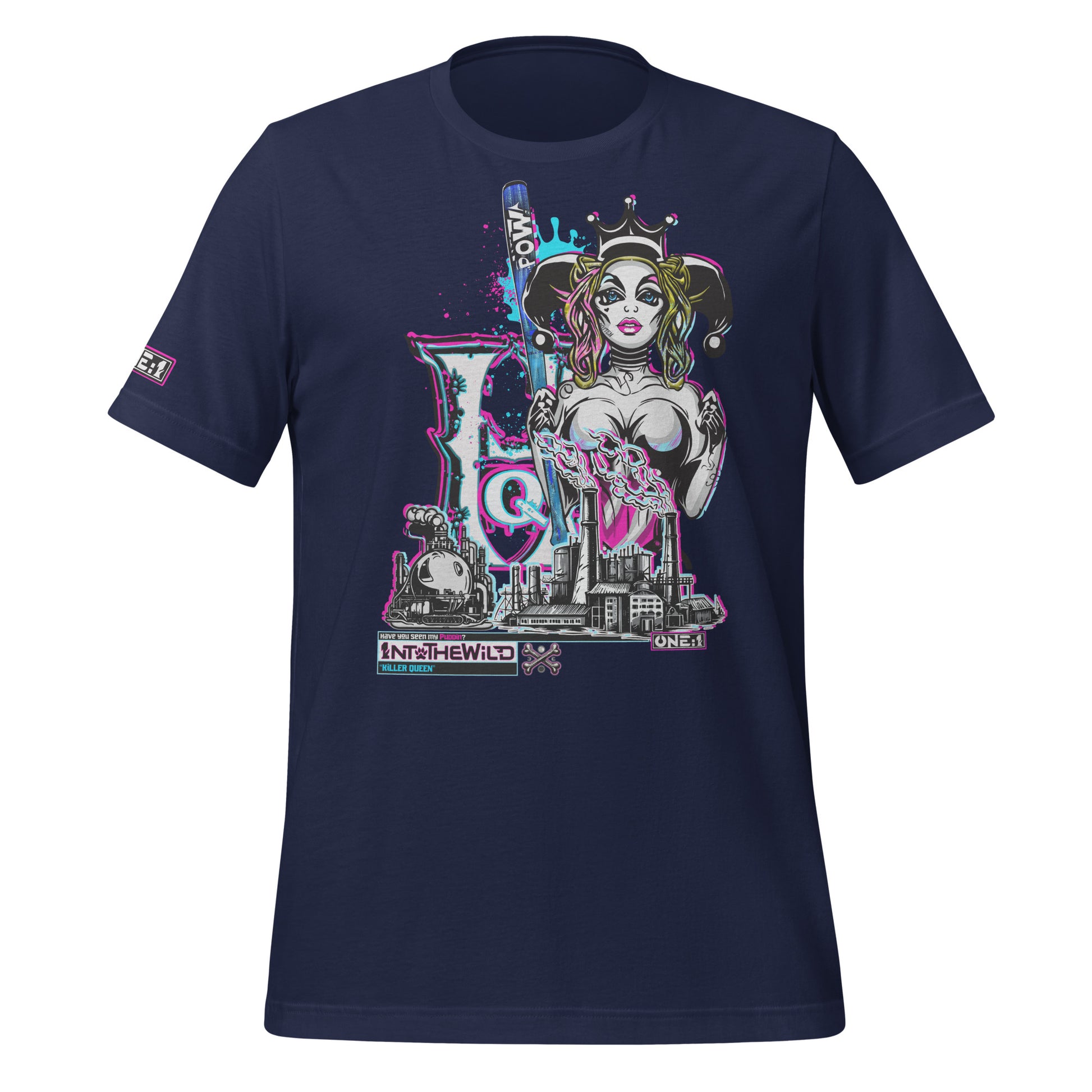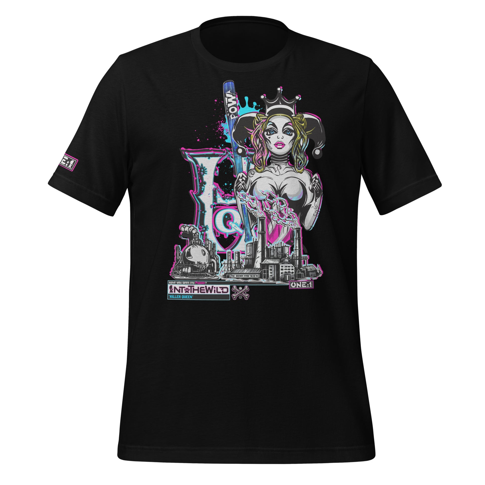 "Killer Queen" T-shirt, 1ntothewild version , with an exuberant and daring design in which pink and blue colors predominate, the set is amazing.