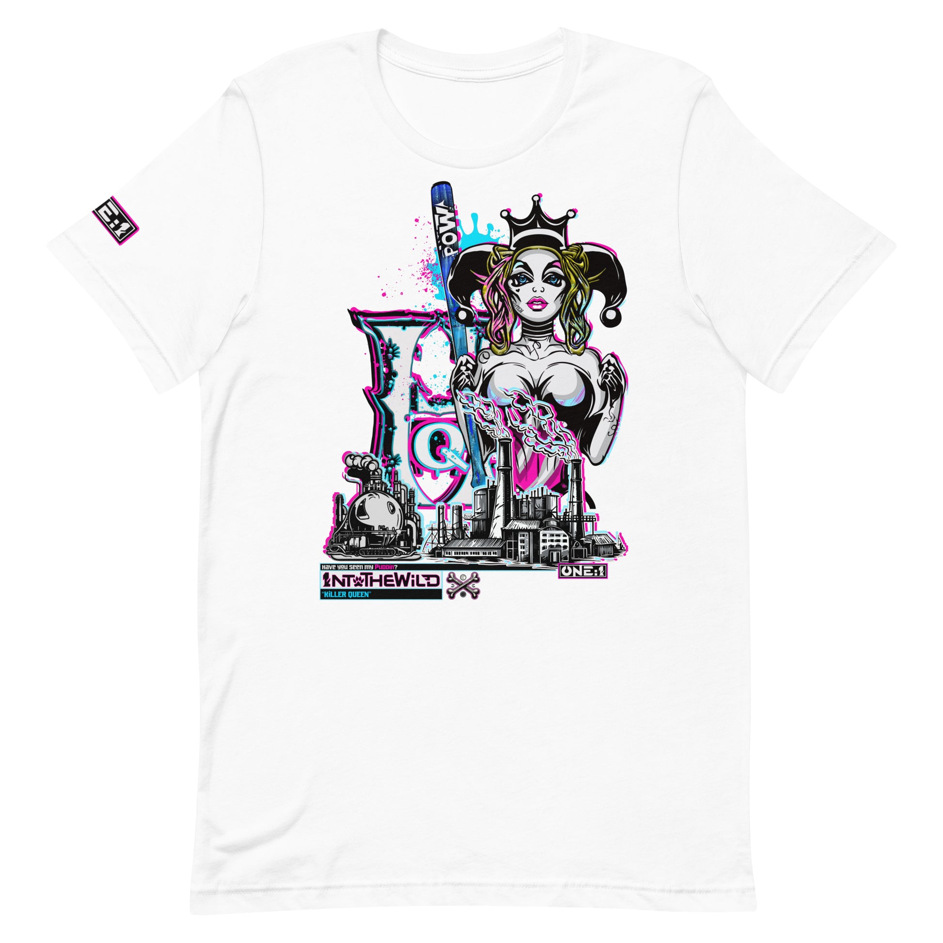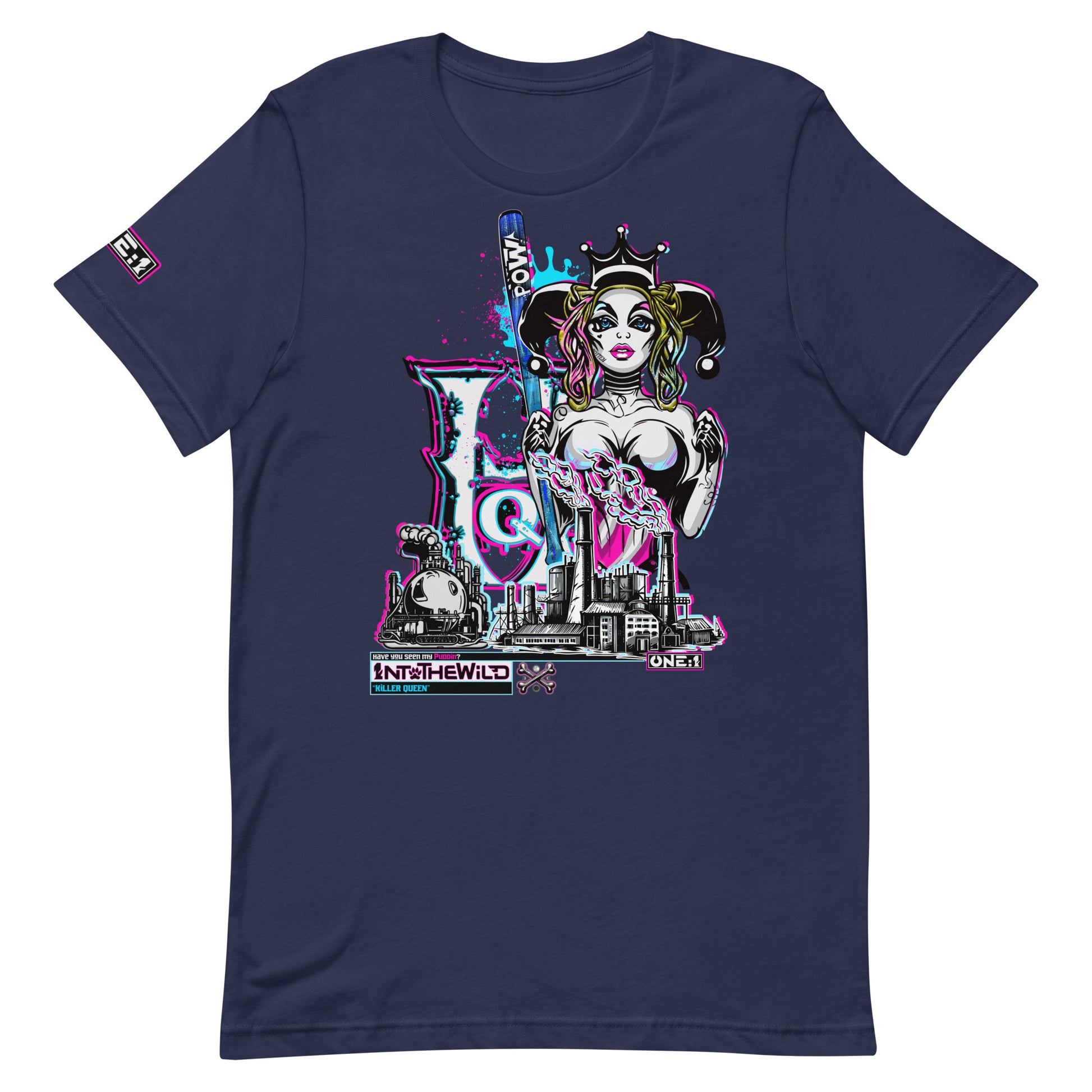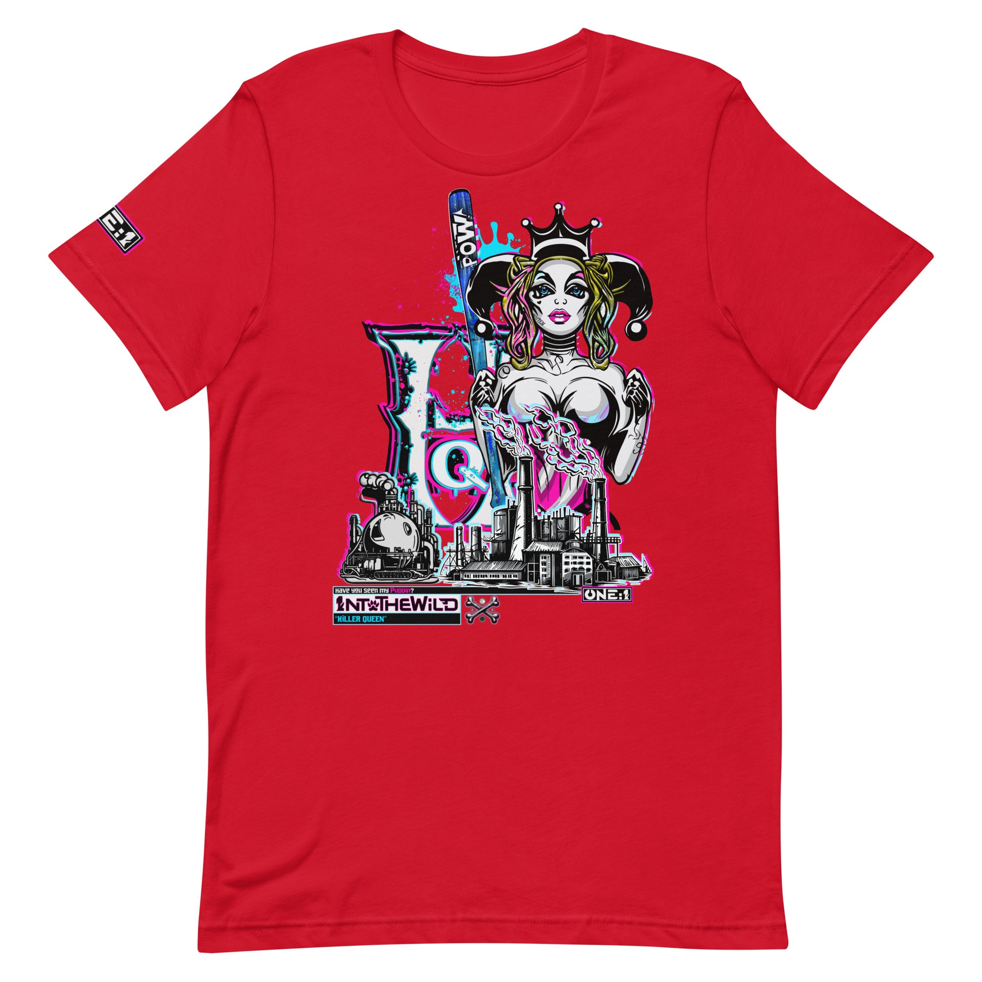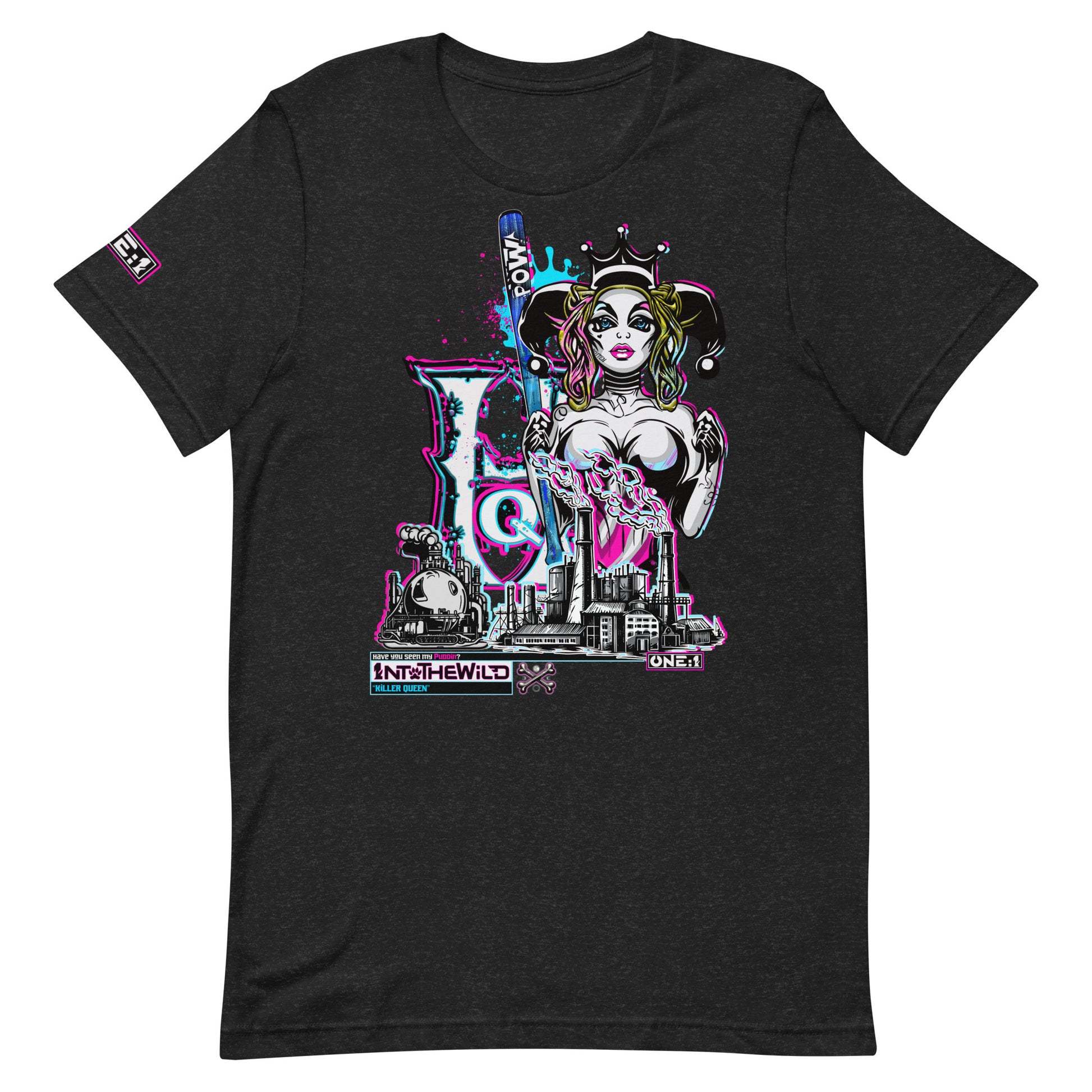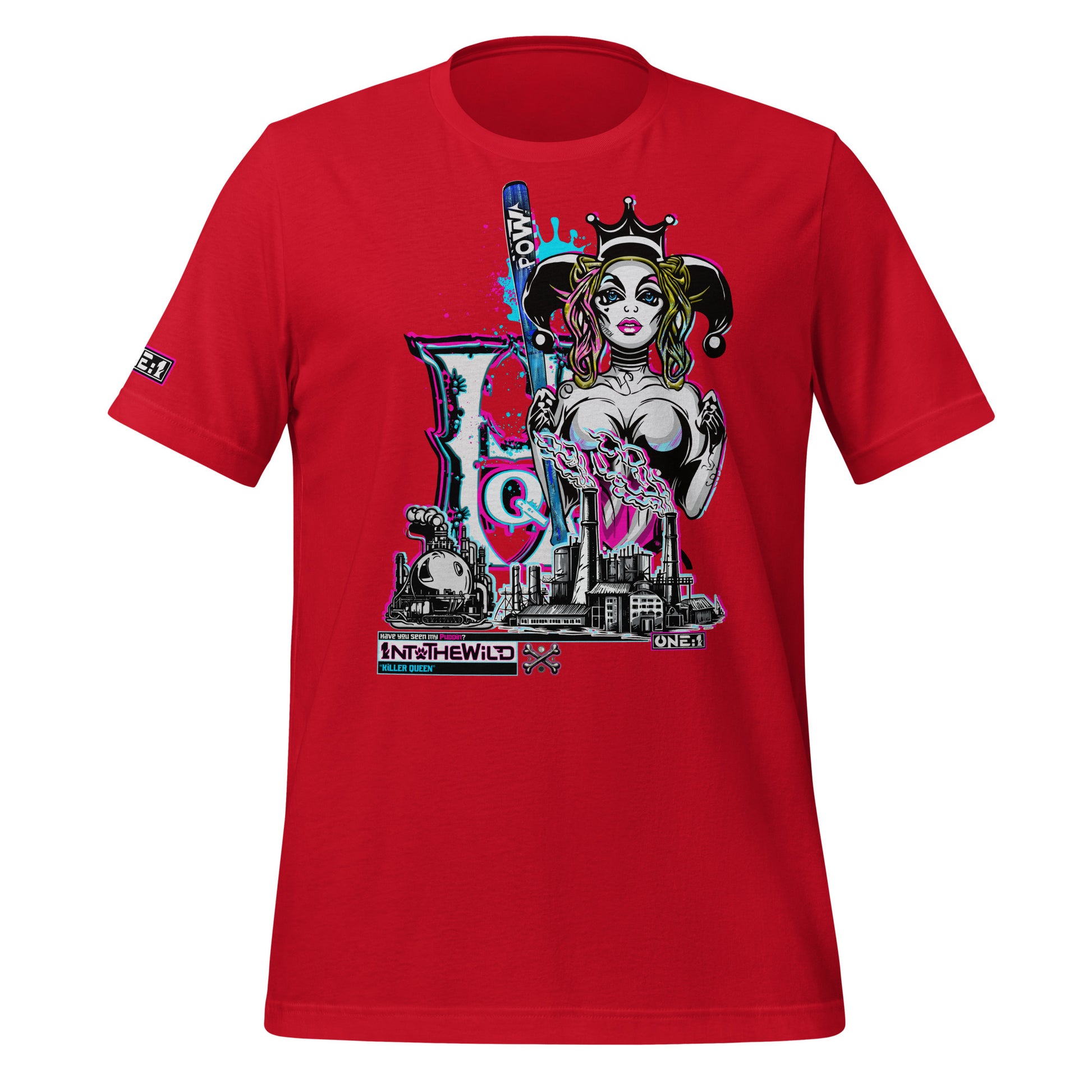 "Killer Queen" T-shirt, 1ntothewild version , with an exuberant and daring design in which pink and blue colors predominate, the set is amazing.