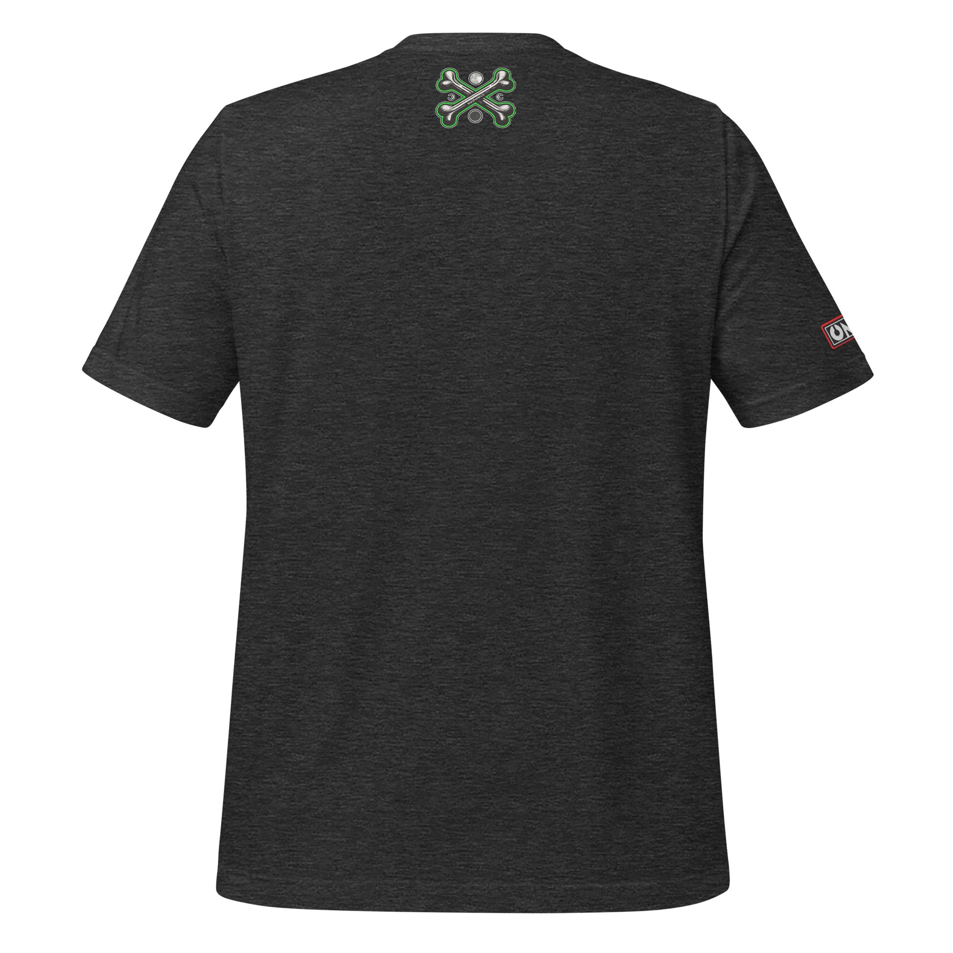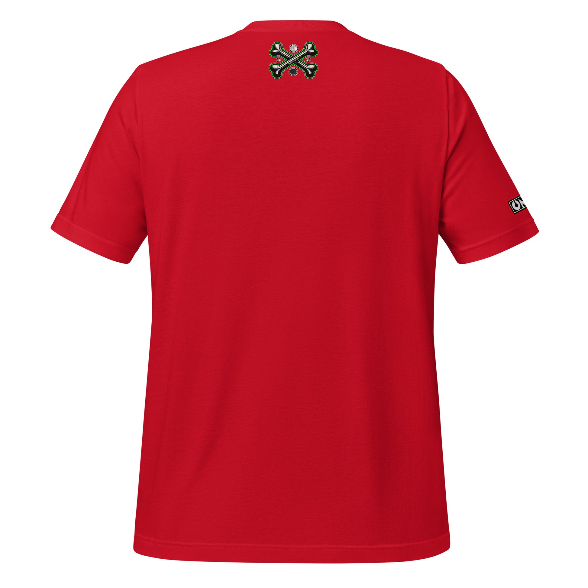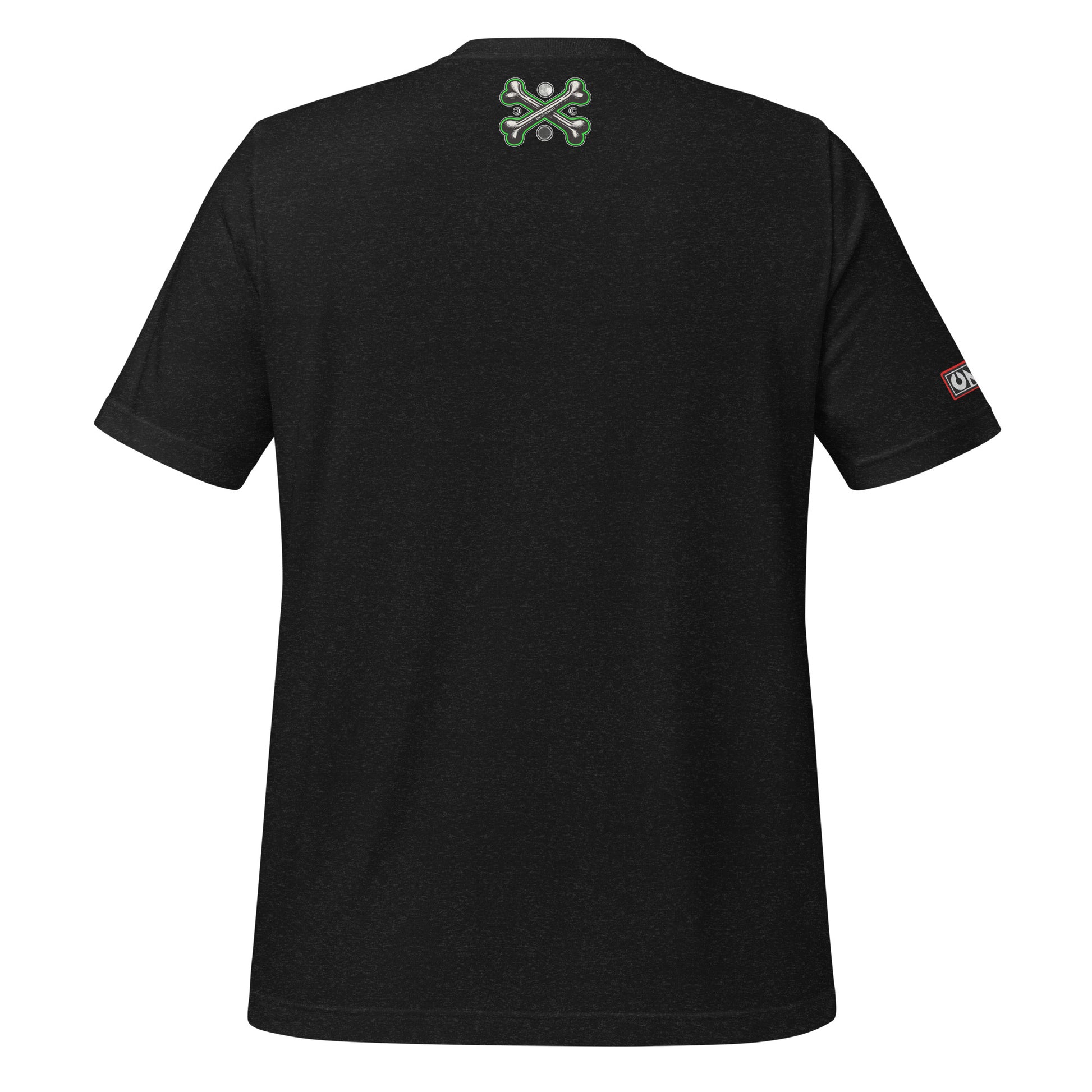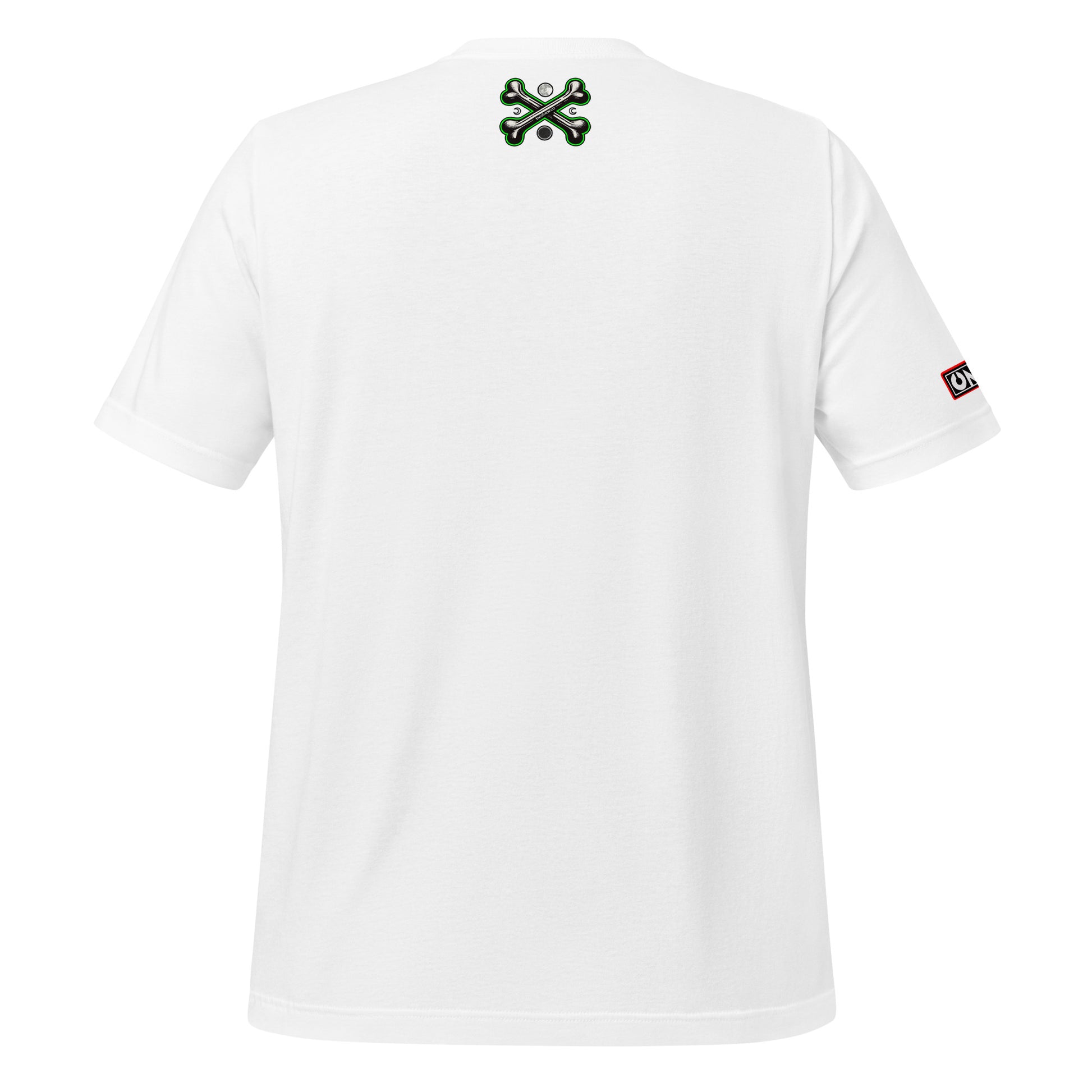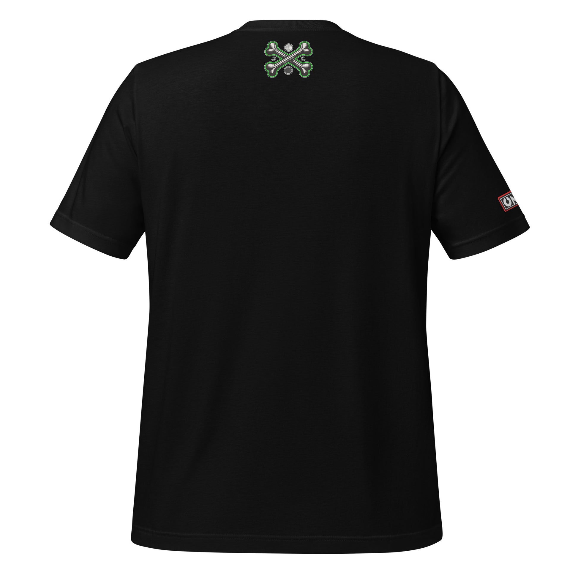 This t-shirt model has 3 different prints: Front, sleeve and upper back area.