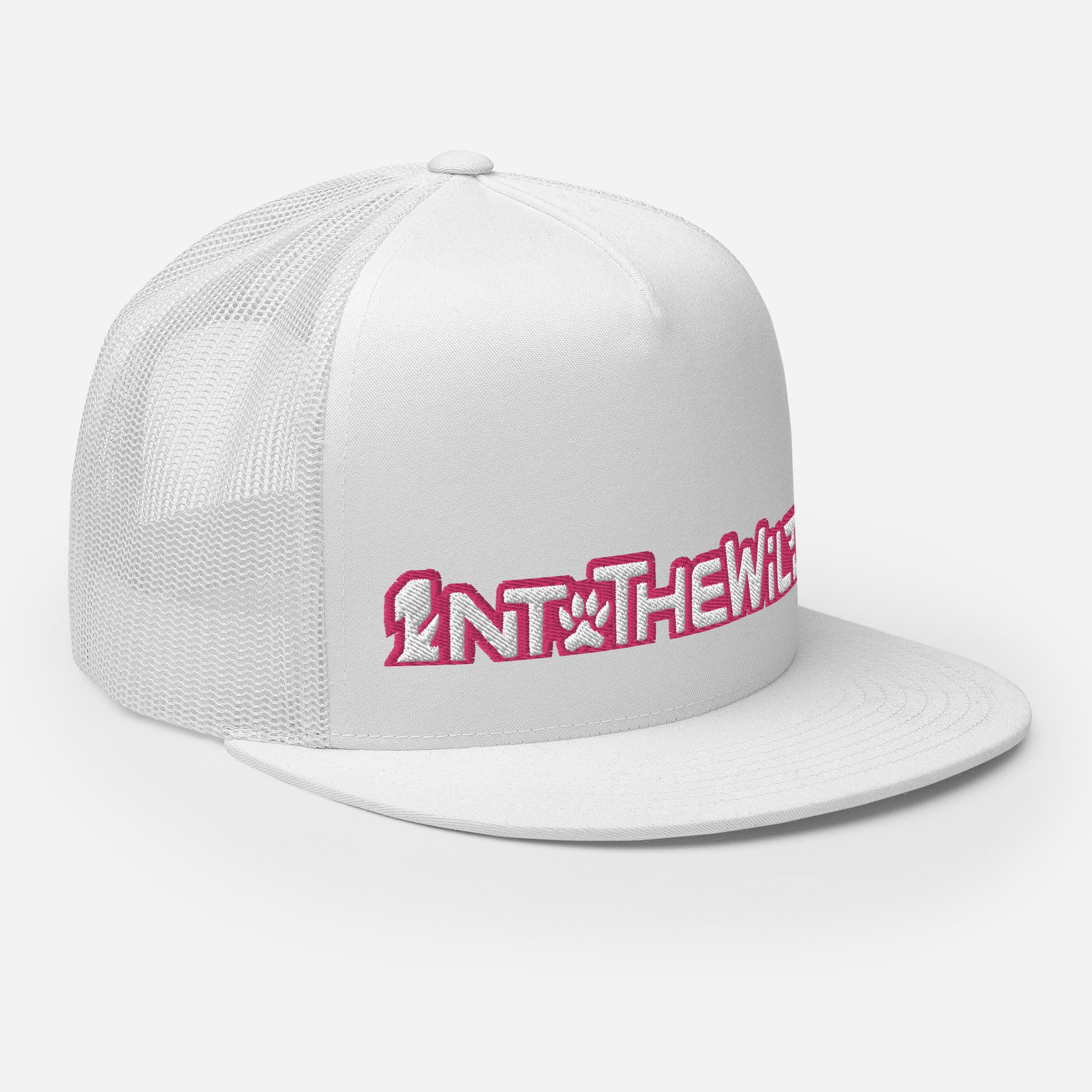 1ntothewild フクシアと白の刺繍が施されたスナップバック キャップ。