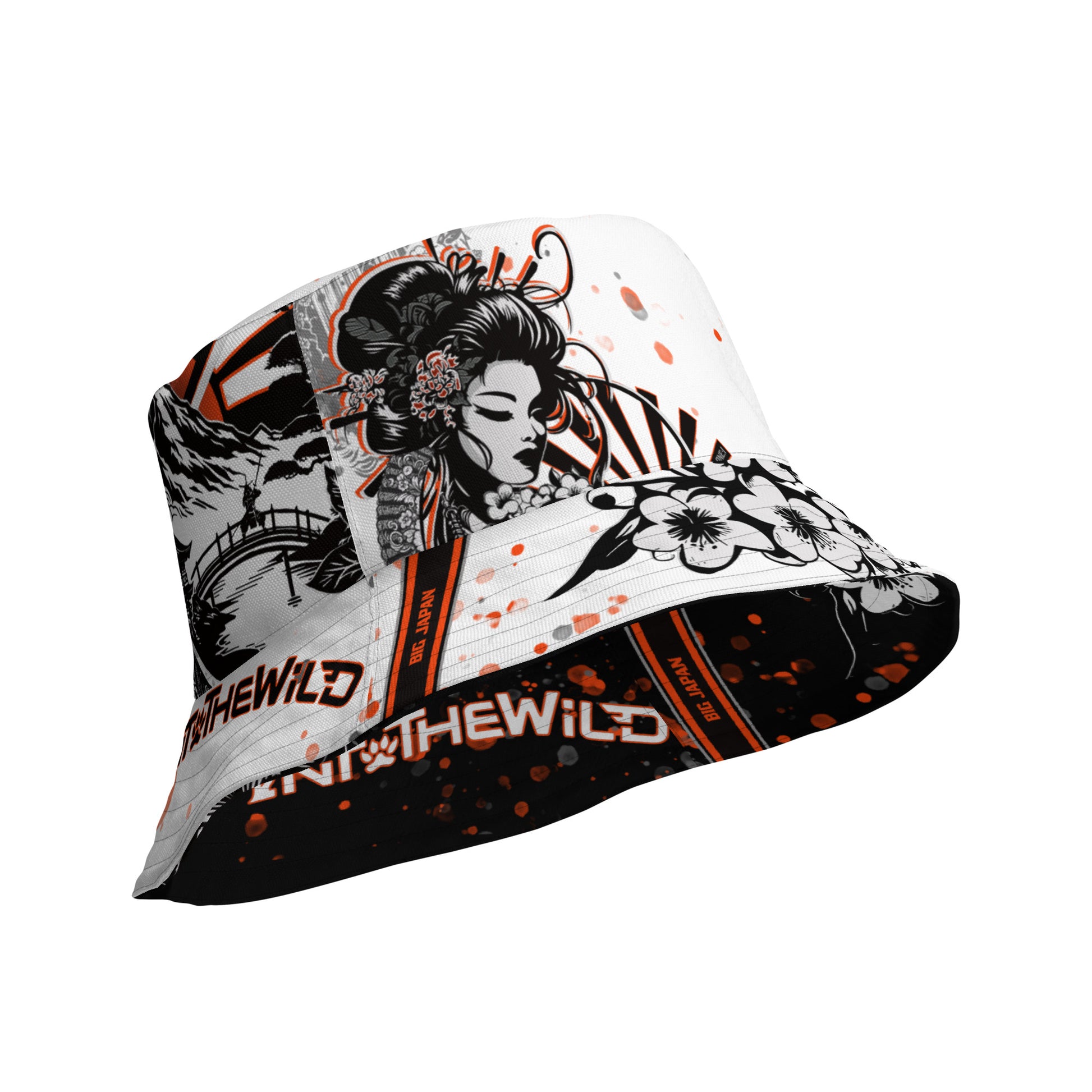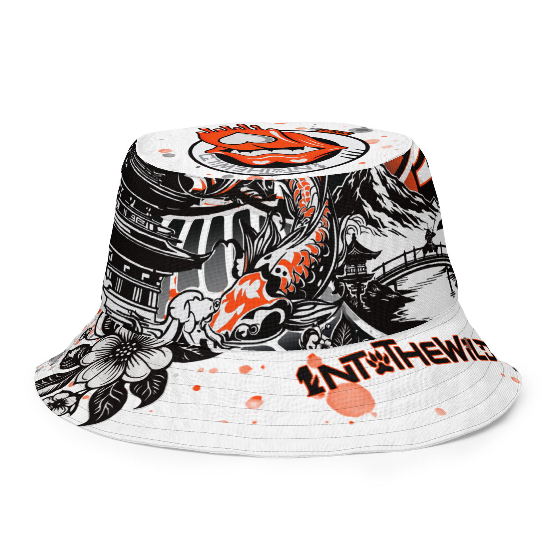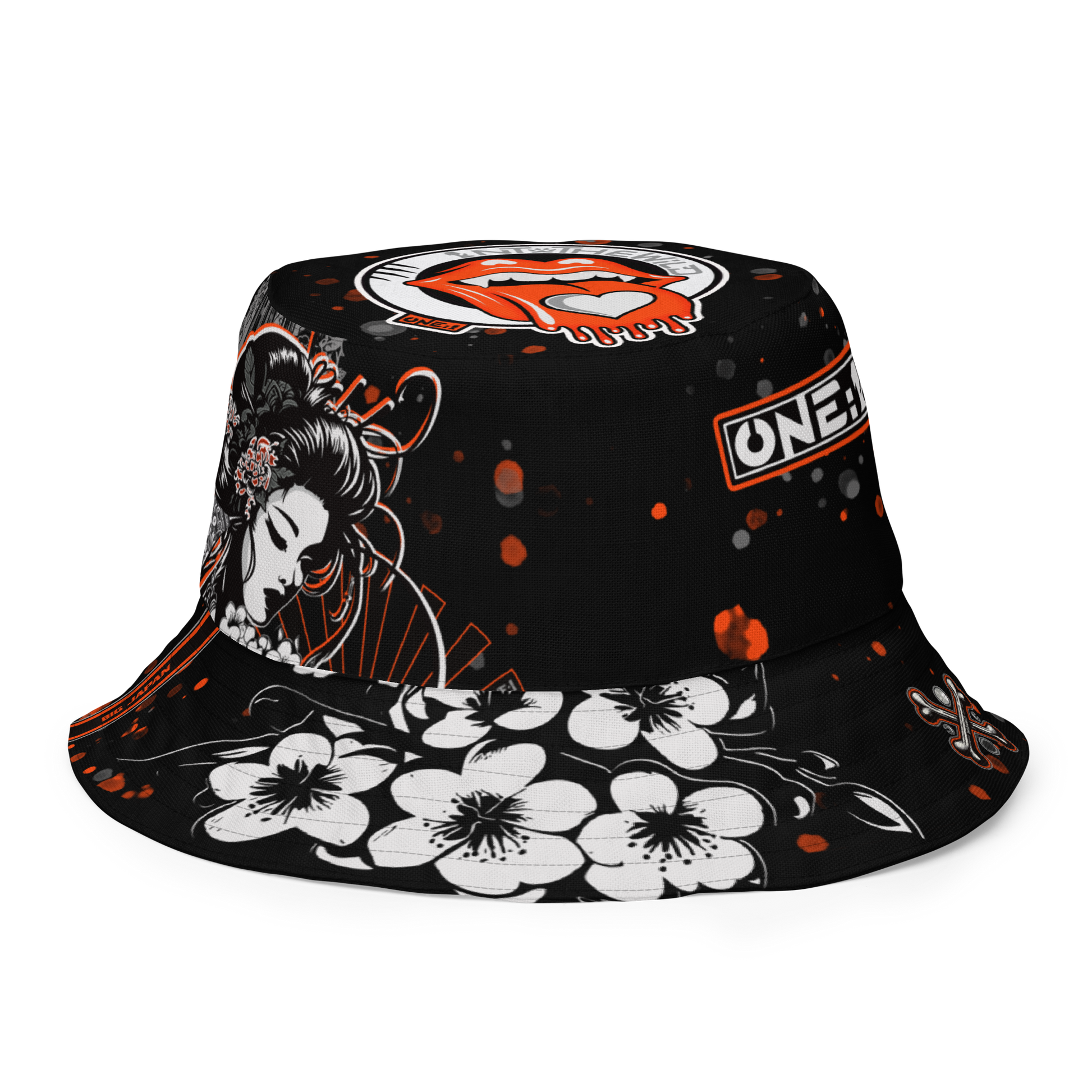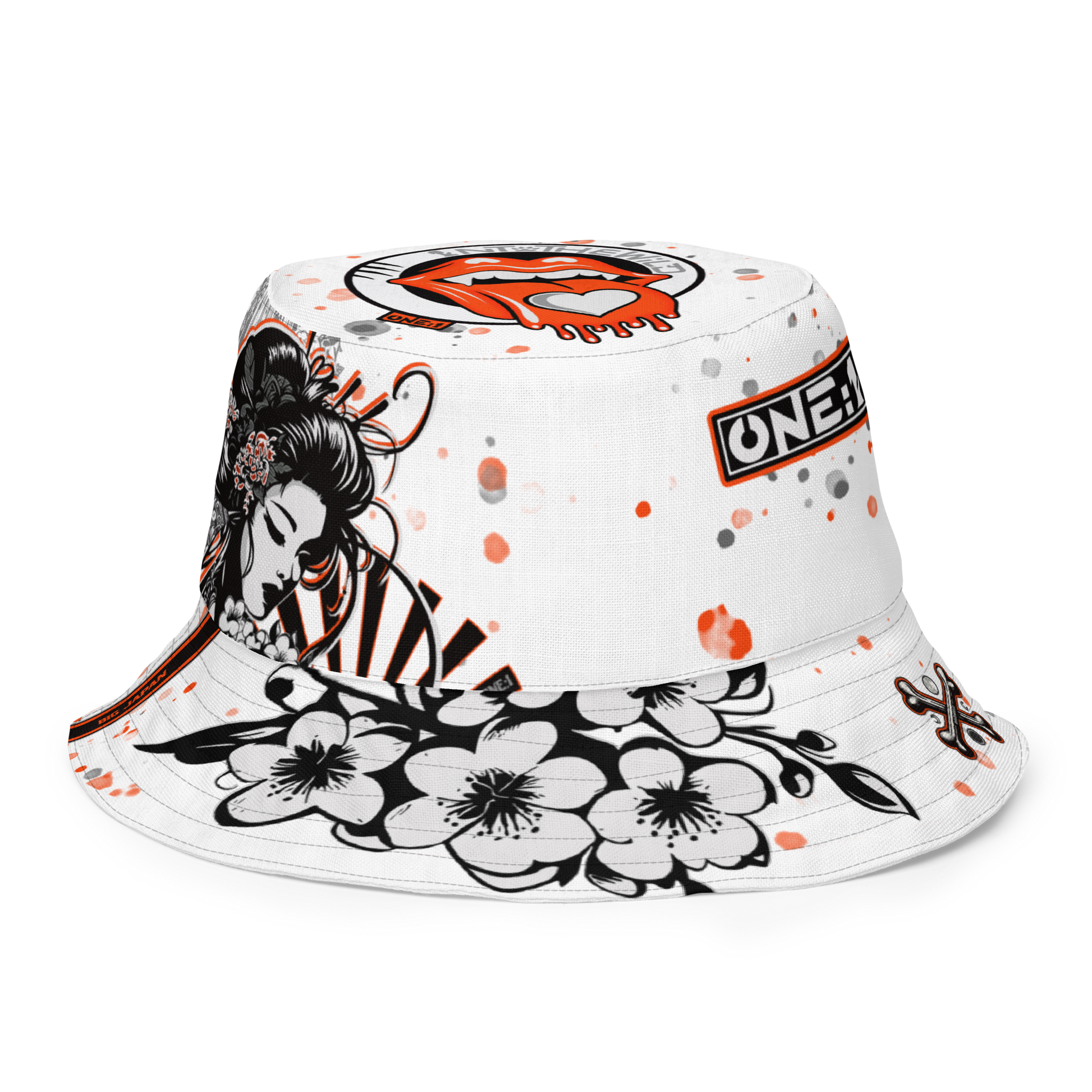 リバーシブルハット、2色(白と黒) 、両面に総プリント。