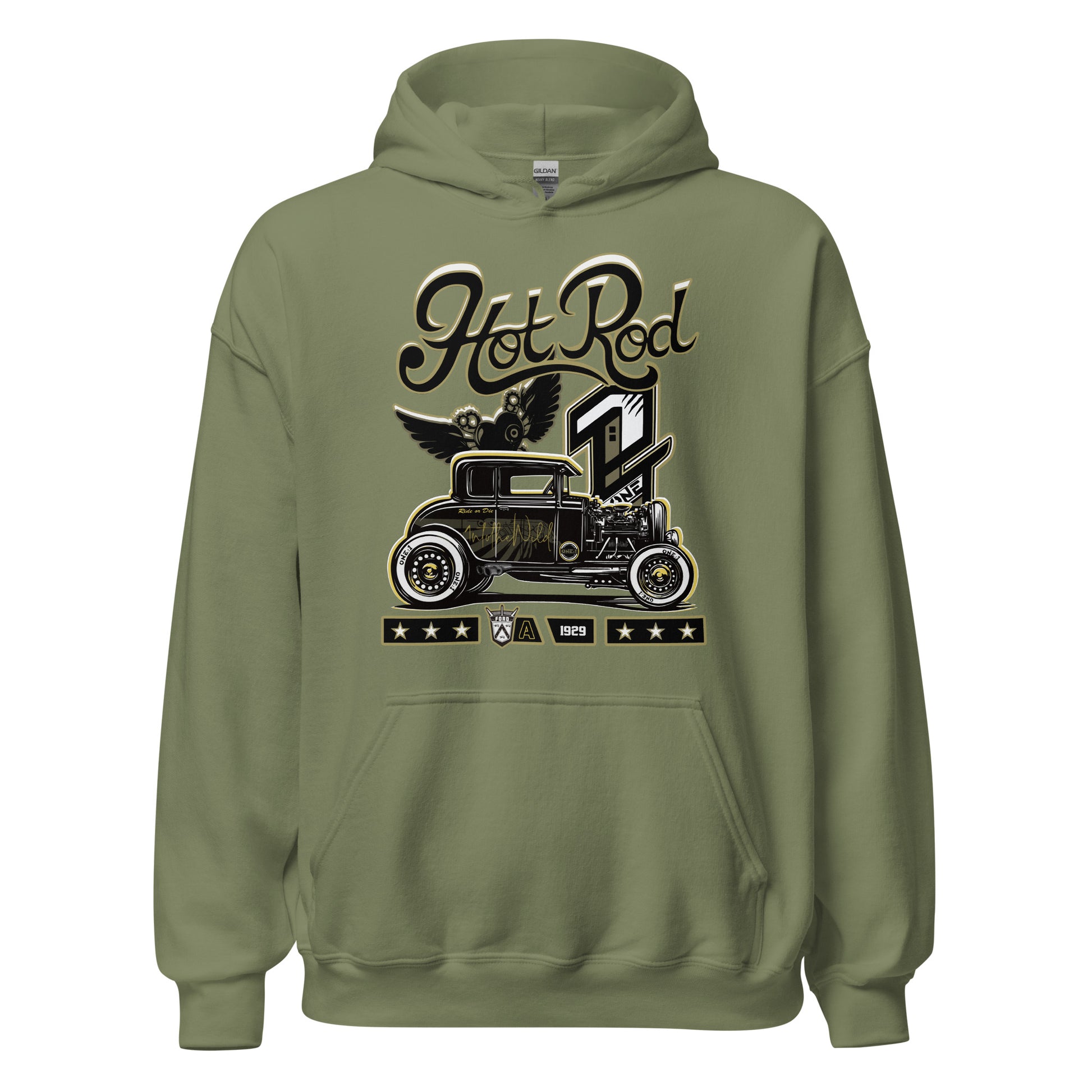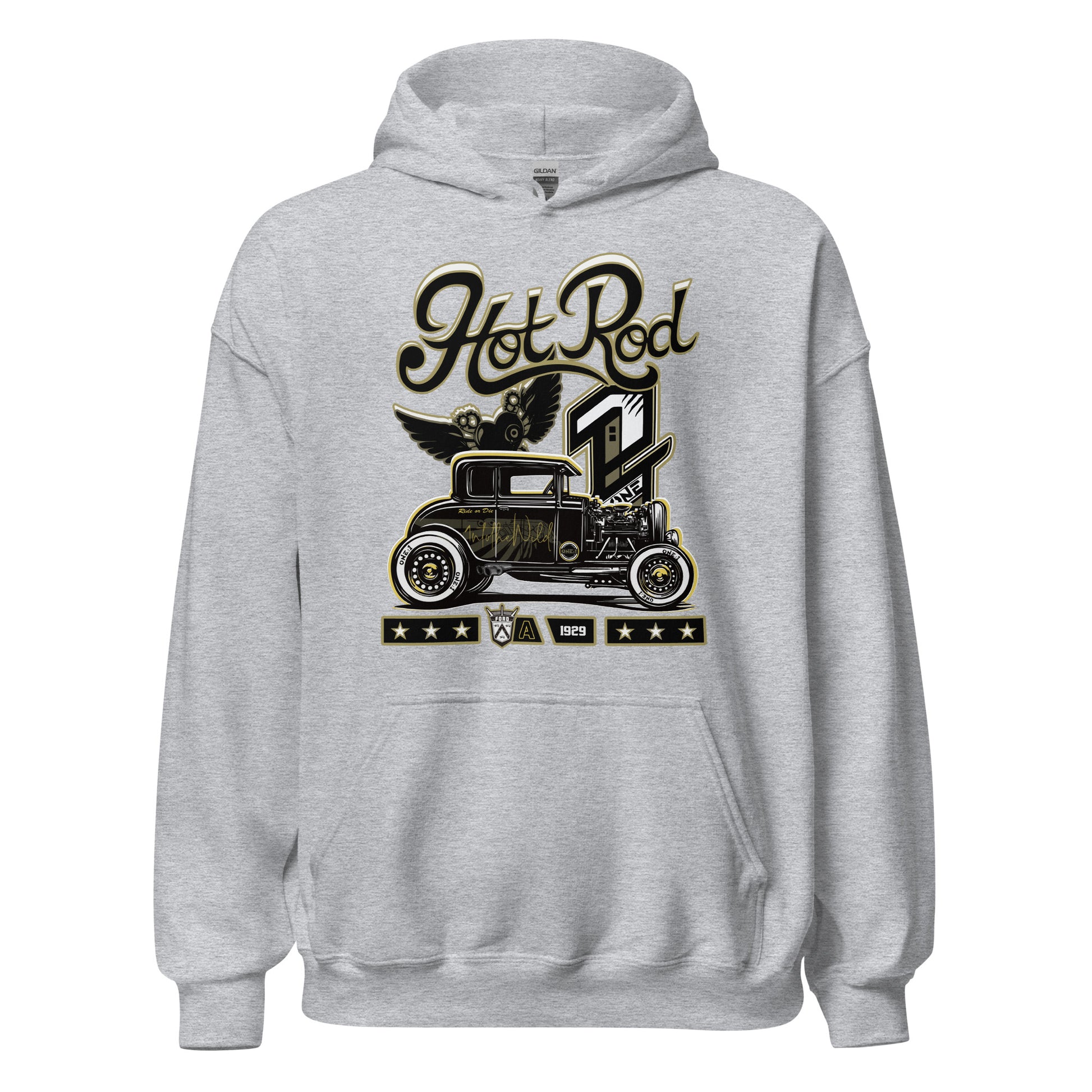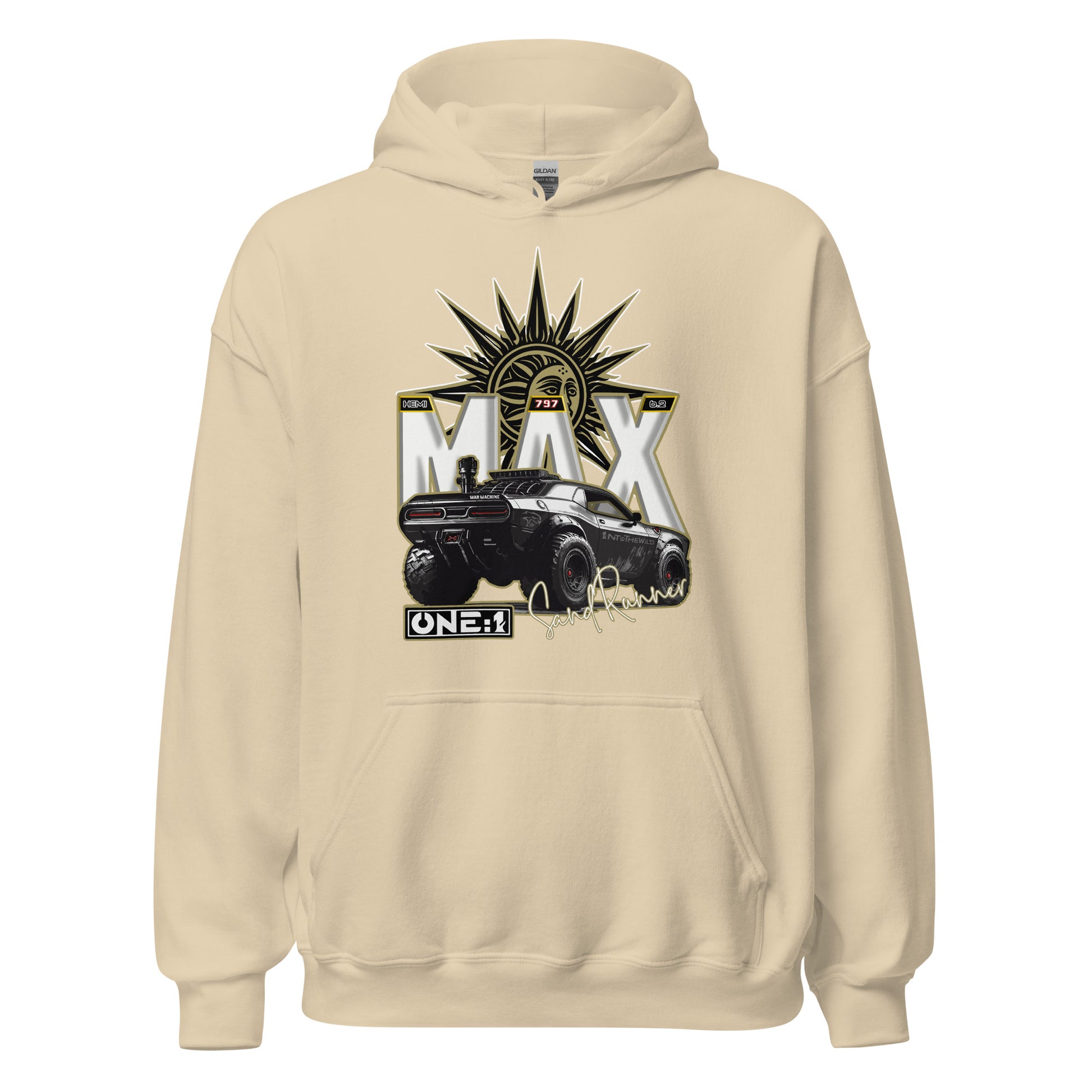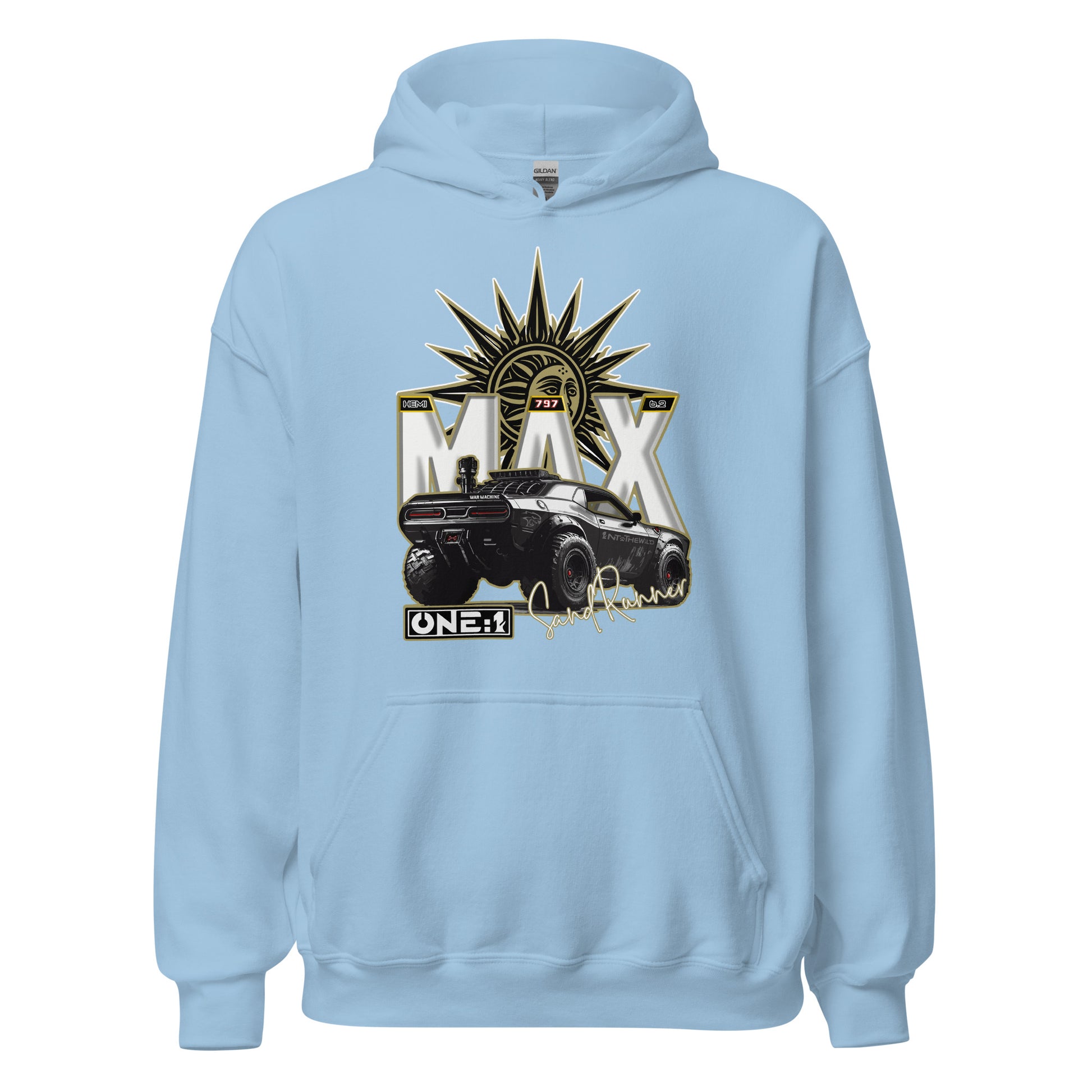 Esta sudadera con capucha War Machine es una sinfonía de ingeniería y estilo, donde la radical estética de este Dodge Challenger se fusiona con el implacable mundo post apocalíptico de la saga Mad Max.